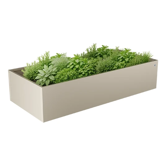 A rozsda- és időjárásálló alumínium szerkezet garantálja, hogy a magaságyás hosszú éveken át megőrzi eredeti szépségét, karbantartás nélkül. Könnyű, mégis masszív kialakítása lehetővé teszi a könnyű mozgathatóságot, miközben stabil alapot biztosít növényeinek.